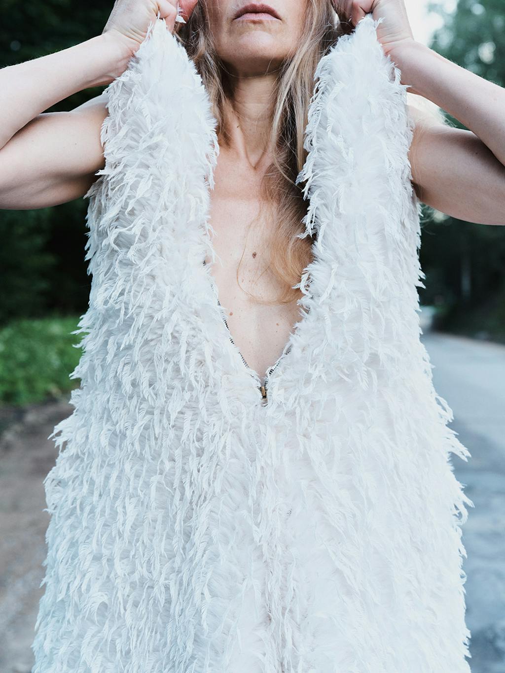 It unravels and re-groups various cultural codes and tropes, whilst simultaneously being openly self-referential and dealing with limitations and obstacles (including the concepts of silhouette, cut, or functionality) through playfulness, but equally with caution and responsibility. +371 mixes choice with chance, and weaves a plot together to create a distinct look on the body.