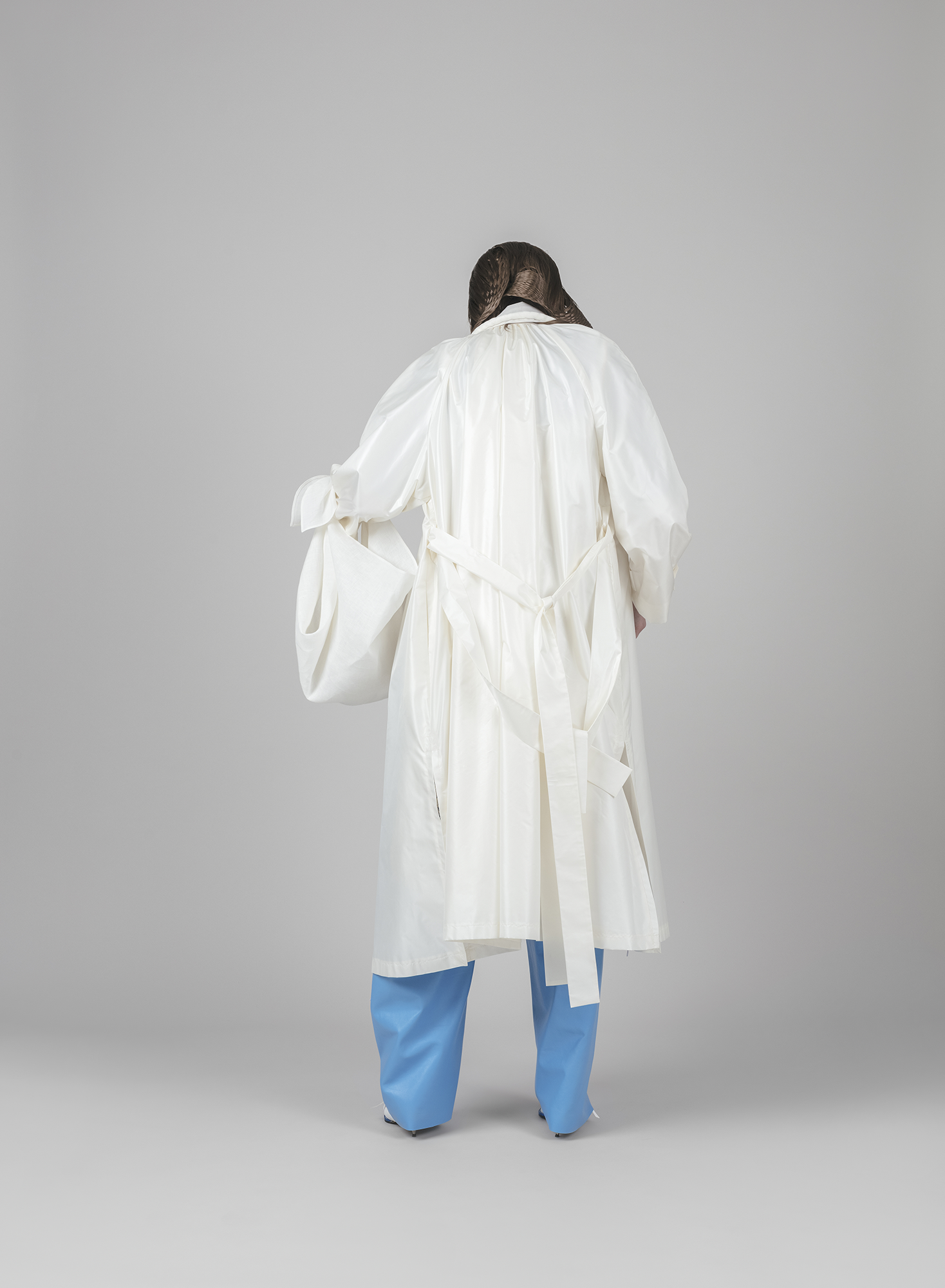 It unravels and re-groups various cultural codes and tropes, whilst simultaneously being openly self-referential and dealing with limitations and obstacles (including the concepts of silhouette, cut, or functionality) through playfulness, but equally with caution and responsibility. +371 mixes choice with chance, and weaves a plot together to create a distinct look on the body.
