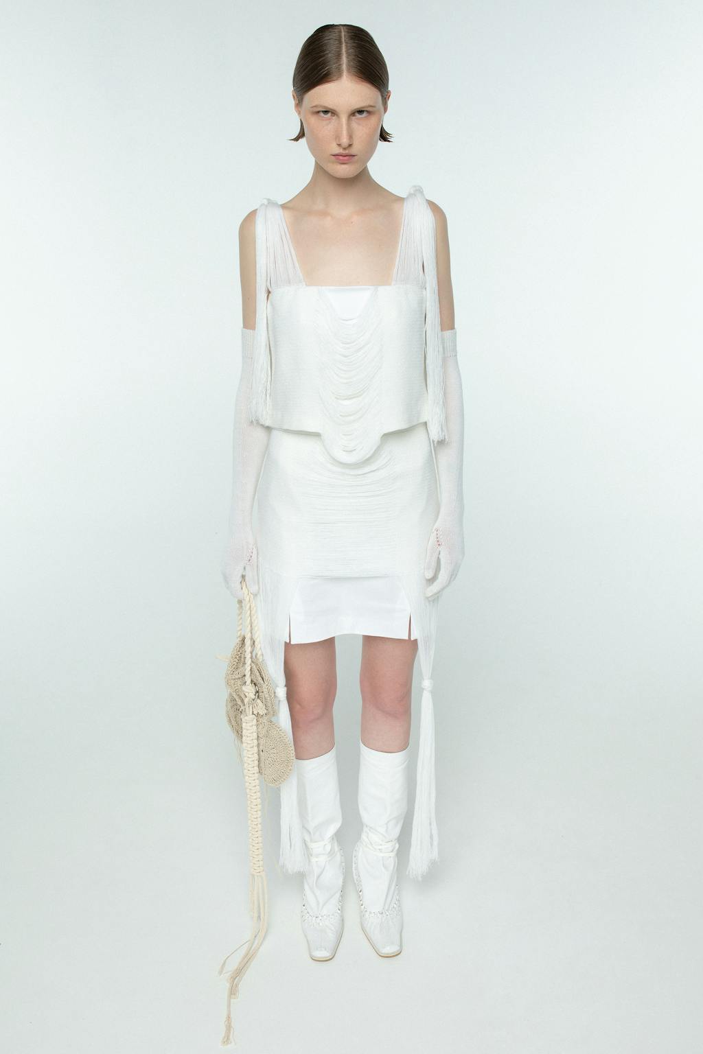 To be frank, the creation takes a while. After all, there's an eternity of craft entwined into the thorough patterns and seemingly accidental tears. I think it's only fair if the same goes for the wearing – until it gracefully tears apart.