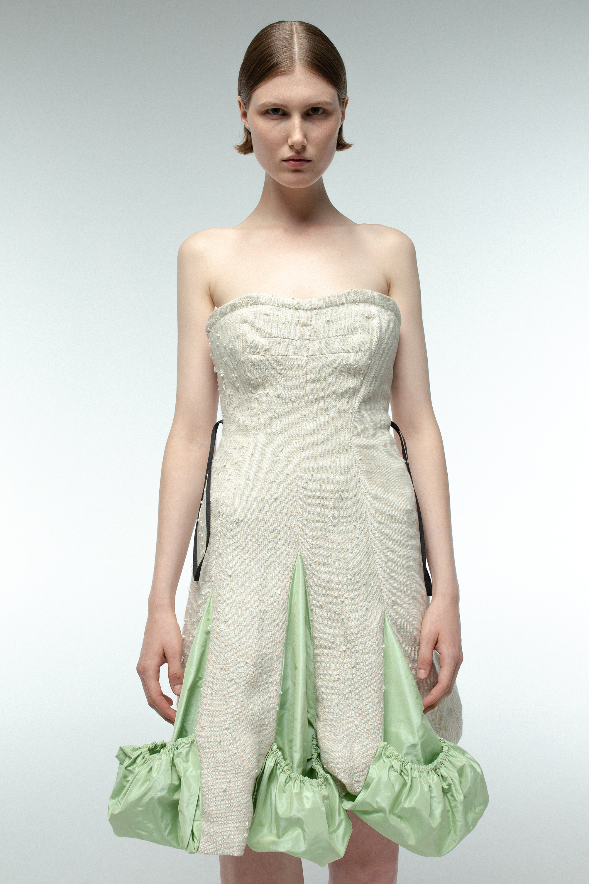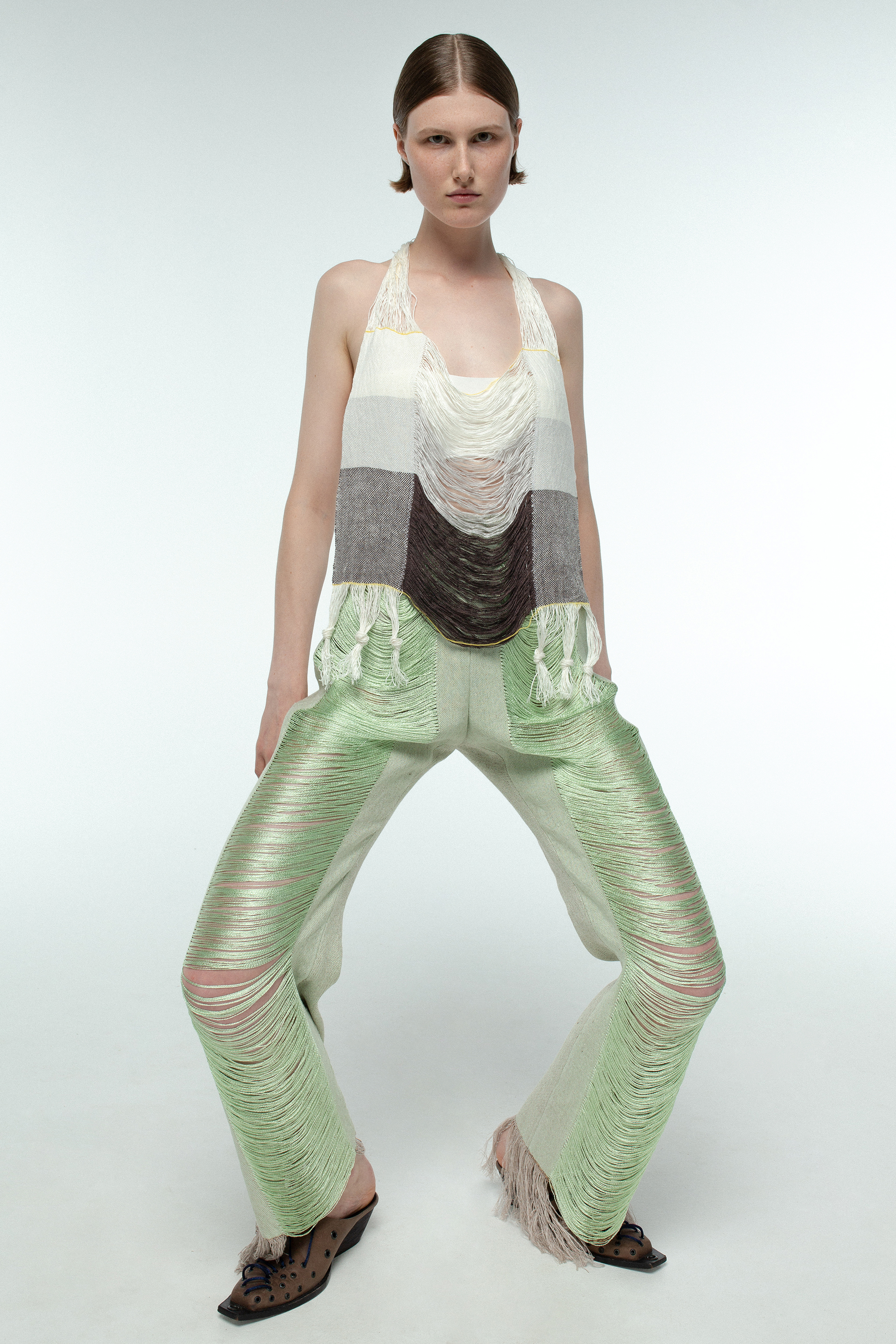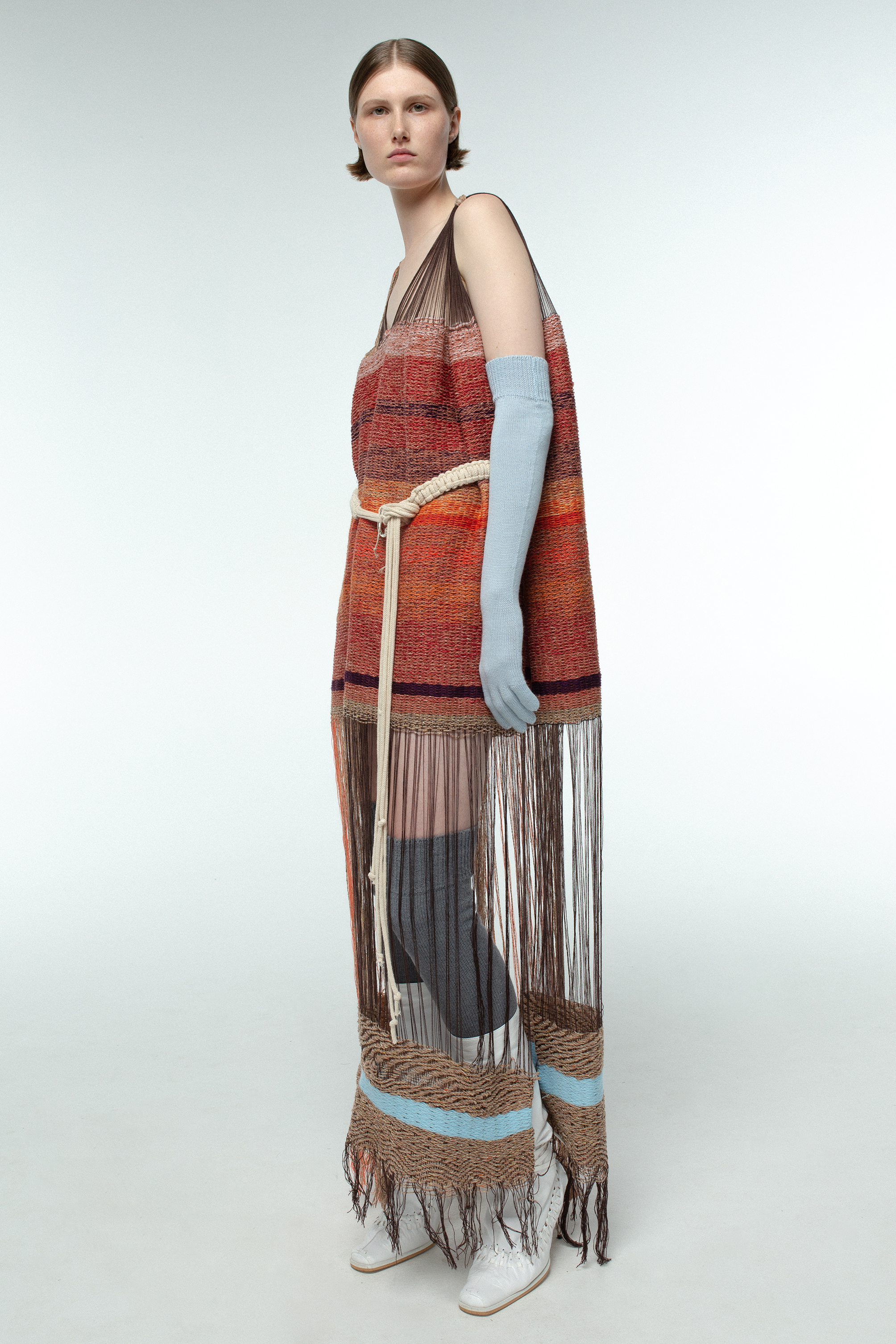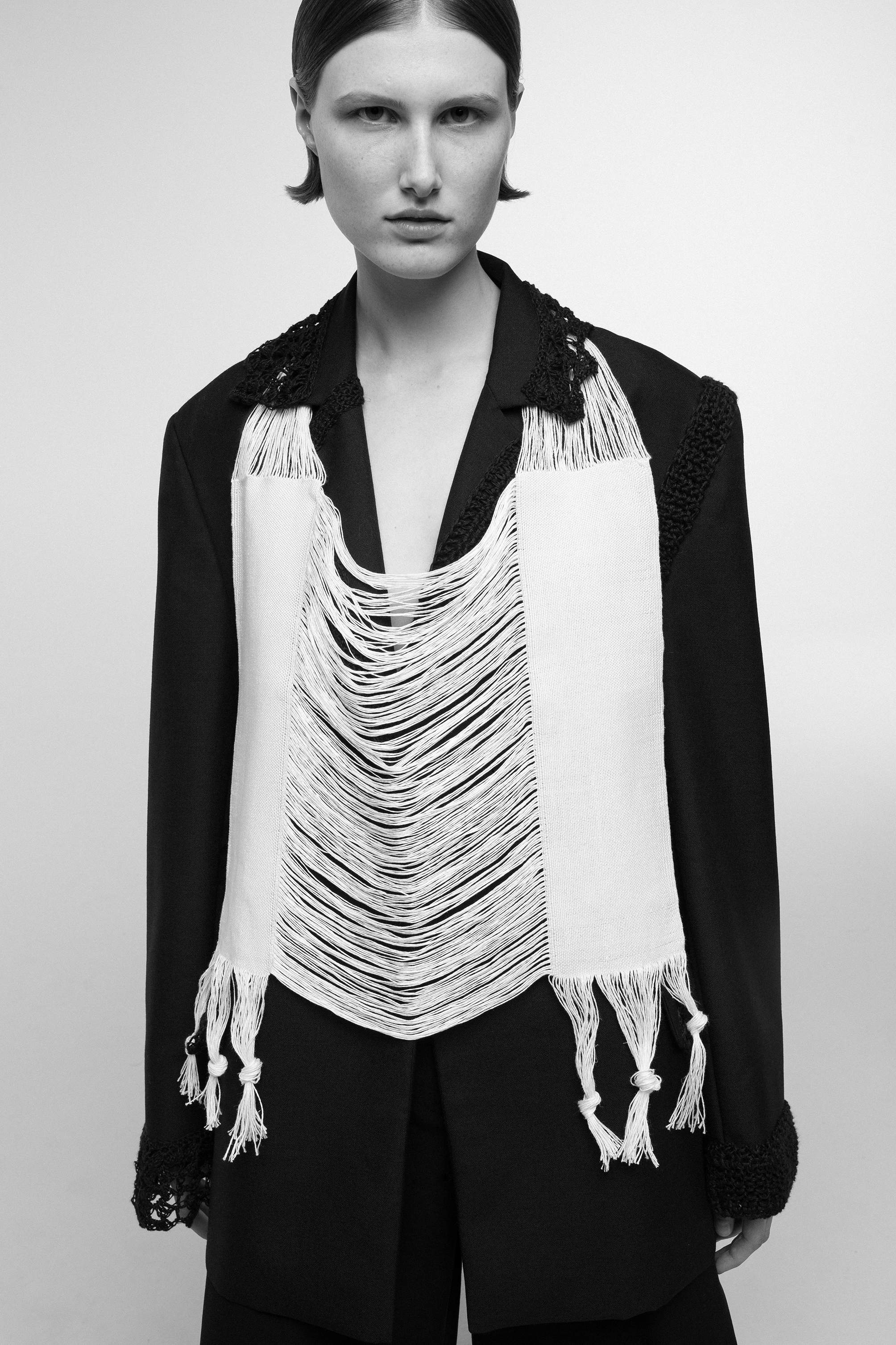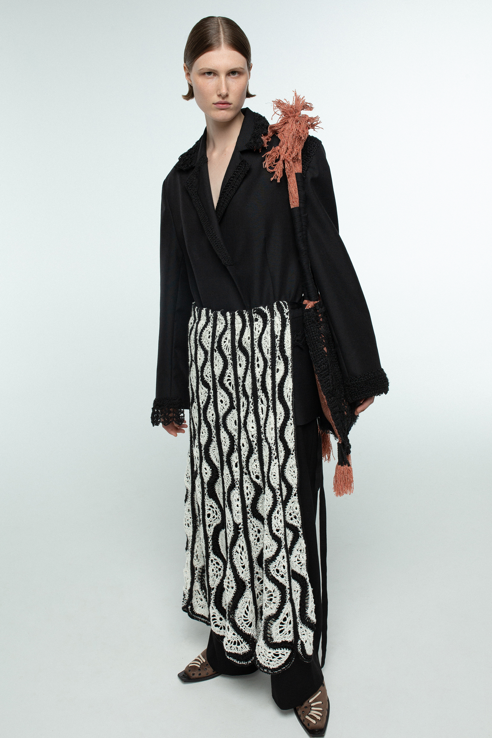 To be frank, the creation takes a while. After all, there's an eternity of craft entwined into the thorough patterns and seemingly accidental tears. I think it's only fair if the same goes for the wearing – until it gracefully tears apart.